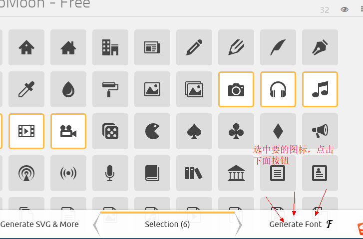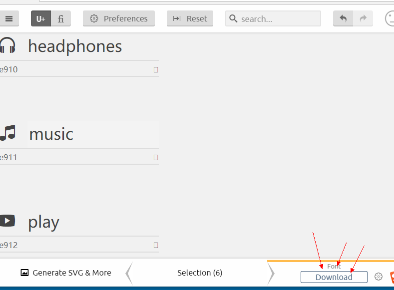 当点击import icons后,会弹出对话框让我们选择上传的svg图片。选择后,网站就会自动生成相应的图标字体。然后点击下载就可以了。