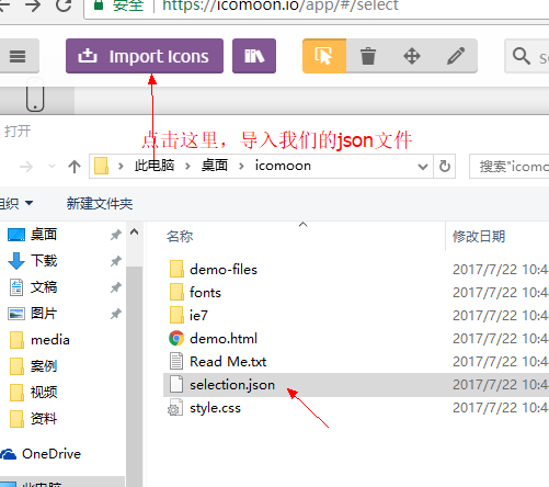 把压缩包里面的selection.json 从新上传,然后,选中自己想要新的图标,从新下载压缩包,替换原来文件即可。